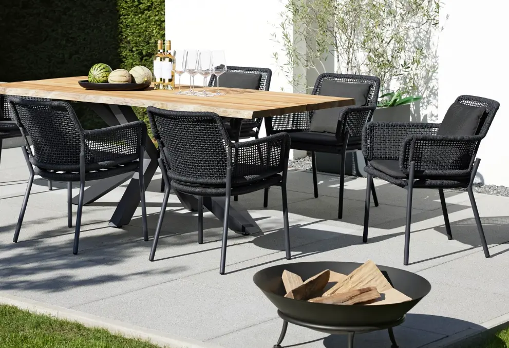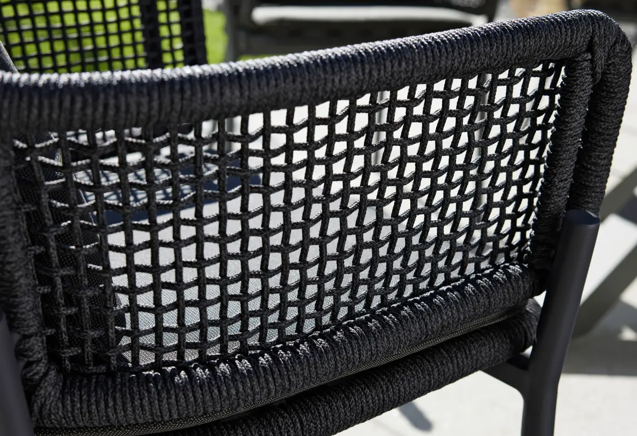 Der Armlehnstuhl 7002 Southend von Interliving begeistert mit seiner stilvollen Kordelflechtung in Dunkelgrau und dem robusten, anthrazitfarbenen Aluminiumgestell. Die komfortable Polsterung aus Outdoorstoff macht ihn zu einem perfekten Begleiter für gemütliche Stunden im Garten oder auf der Terrasse. Ob zum entspannten Essen oder entspanntem Zusammensein – dieser Stuhl vereint modernes Design mit wetterfester Funktionalität. Entdecken Sie diesen eleganten Armlehnstuhl bei Delta Möbel in Haag, Ihrem Fachgeschäft für Gartenmöbel, Küchen und Wohnaccessoires.