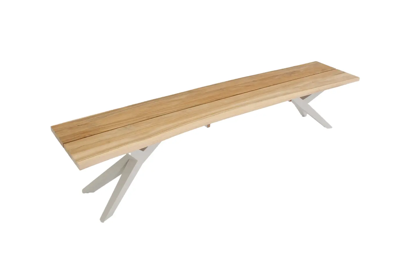 Die Bank MR Skagen von Musterring ist aus massivem, gebürstetem Teakholz mit natürlicher Baumkante gefertigt und bringt rustikalen Charme in deinen Garten oder auf die Terrasse. Das pulverbeschichtete Gestell in elegantem Ivory-Y-Fuss sorgt für Stabilität und ein modernes Design. Mit einer Länge von ca. 220 cm bietet die Sitzbank ausreichend Platz für gesellige Momente im Freien – perfekt kombiniert mit einem passenden Tisch und Sitzschalen. Entdecken Sie diese hochwertige Bank bei Delta Möbel in Haag, Ihrem Experten für exklusive Möbel, Küchen und stilvolle Boutique-Artikel.