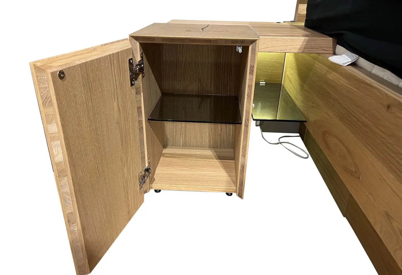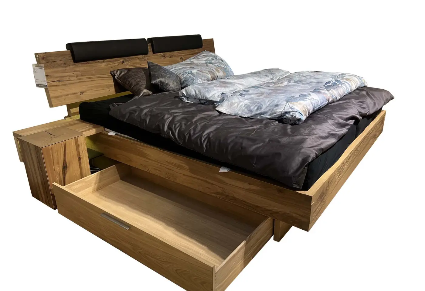 Die Bettanlage V-Alpin sleeping von Voglauer vereint rustikalen Charme mit moderner Eleganz dank ihres massiven Rahmens aus Eiche Altholz. Mit den warmen Holztönen bringt das naturbelassene Material Gemütlichkeit in jedes Schlafzimmer. Das großzügige Doppelbett lädt mit seinen Maßen von 180x200 cm zum erholsamen Träumen ein und setzt dabei auf hochwertige Handwerkskunst aus Deutschland und Frankreich. Zaubere deinem Rückzugsort mehr Atmosphäre und nachhaltigen Stil – exklusiv bei Delta Möbel in Haag, deinem Partner für Möbel, Küchen und einzigartige Wohnideen.