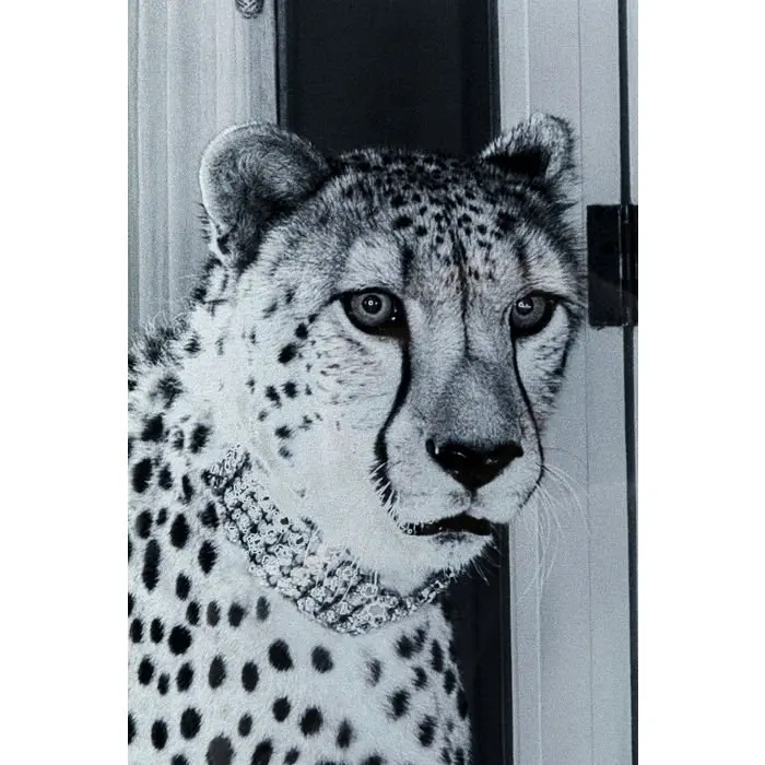 Dieses faszinierende Gepard-Glasgemälde zeigt in eindrucksvoller Schwarz-Weiss-Optik einen Geparden, der sich im Spiegel betrachtet – ein Symbol für Stärke, Anmut und Selbstreflexion. Mit einer Breite von ca. 150 cm, einer Höhe von ca. 100 cm und einer Tiefe von ca. 4 cm ist dieses Bild ein eindrucksvoller Blickfang für jede moderne Wohnraumgestaltung. Gefertigt aus robustem Polypropylen und foliertem Sicherheitsglas, überzeugt es durch hochwertige Verarbeitung und Langlebigkeit. Entdecke dieses außergewöhnliche Kunstwerk bei Delta Möbel in Haag, deinem Experten für besondere Wohnaccessoires und Designobjekte.