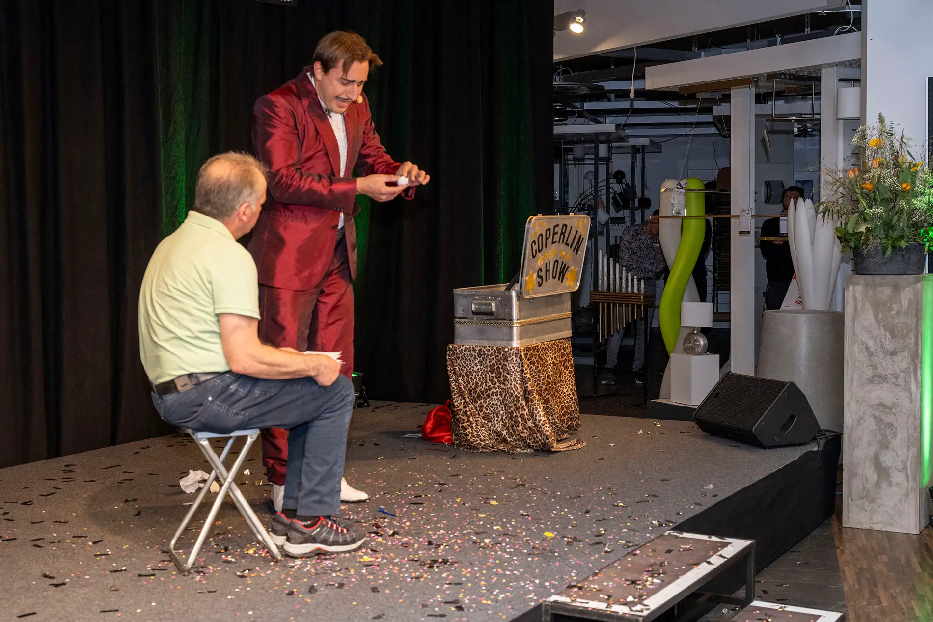 Nina Burri und Lucas Fischer hatten ein Quick-Change Programm verbunden mit Akrobatik. Danach überzeugte The Great Coperlin mit seinen magischen Künsten. Ein grosses Dankeschön allen Besucherinnen und Besuchern unserer Frühjahrs-Hausmesse. Hier finden Sie einige Eindrücke des Events und wir freuen uns auf die nächste Messe.