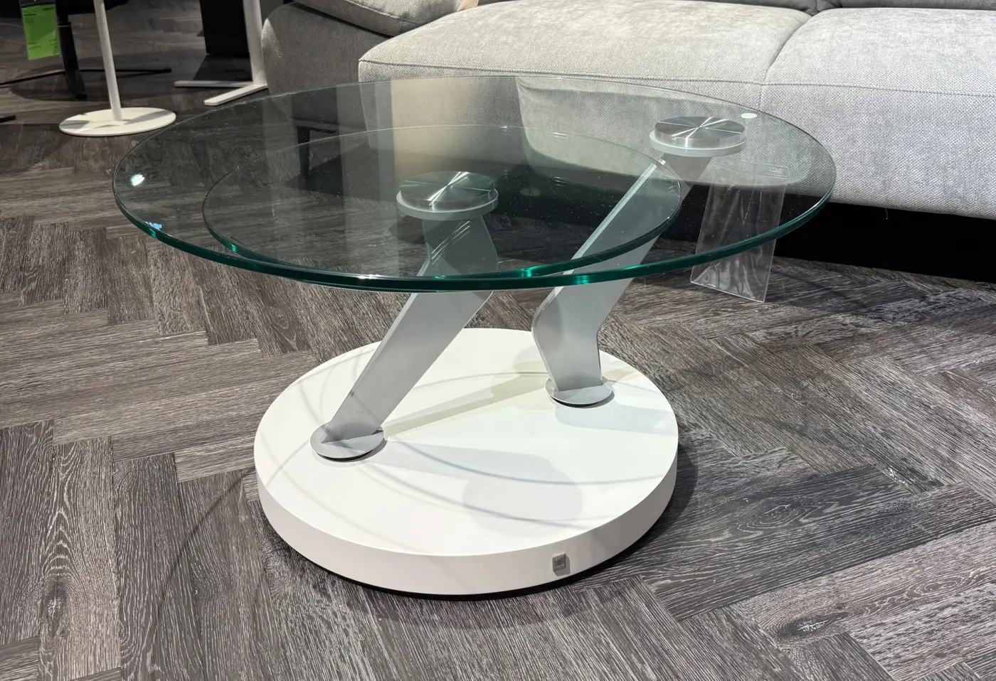 Couchtisch 16805 Lack weiss, Gestell aluminiumfarbig Glas ca. 135x43x80cm