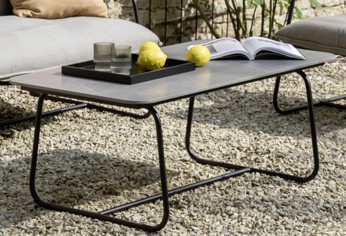 Der Couchtisch Fontein von Schöner Wohnen aus der Keramik-Kollektion begeistert mit seiner eleganten lichtgrauen Tischplatte und dem filigranen schwarzen Aluminiumgestell. Mit einer Länge von 120 cm und einer Breite von 60 cm bietet er viel Platz für Getränke, Snacks oder deine Lieblingsdeko und wird so zum stilvollen Mittelpunkt jeder Lounge-Ecke – drinnen wie draussen. Dank wetterfestem Material und hochwertiger Verarbeitung ist er der perfekte Begleiter für gemütliche Stunden im Garten oder auf der Terrasse. Entdecken Sie den Couchtisch Fontein exklusiv bei Delta Möbel in Haag, Ihrem Fachgeschäft für Möbel, Küchen und exklusive Wohnaccessoires.