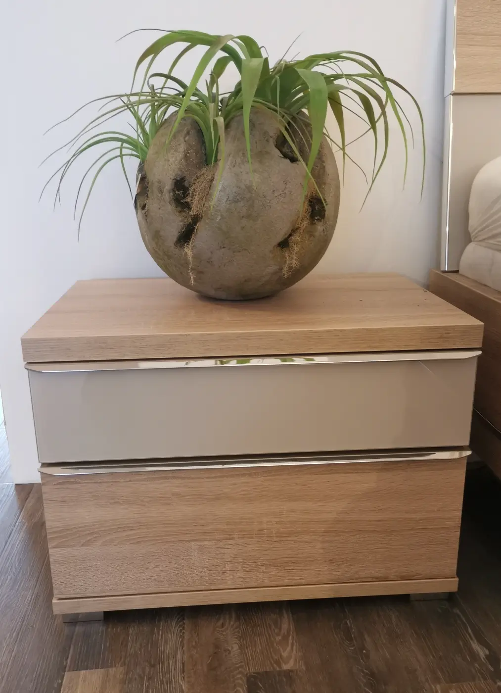 Das elegante Doppelschlafzimmer 23804 in Sandglas Sonoma Eiche vereint warmen Holzcharme mit modernem Design und sorgt für eine entspannte Atmosphäre im Schlafzimmer. Die sanfte Sandglas-Farbe und das hochwertige Eichenmaterial bringen natürliche Gemütlichkeit in Ihr Zuhause. Mit praktischem Schwebetüren-Schrank und passender Kommode bietet dieses Ensemble großzügigen Stauraum und durchdachte Funktionen wie Öffnungs- und Schliessdämpfer für angenehme Handhabung. Lassen Sie sich von der harmonischen Kombination aus Stil und Komfort begeistern – exklusiv bei Delta Möbel in Haag, Ihrem Experten für Möbel, Küchen und stilvolle Wohnaccessoires.