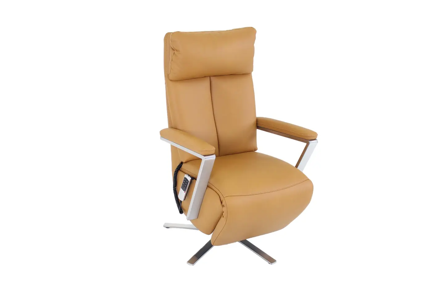 Der stilvolle Relaxsessel aus hochwertigem Evita Leder in warmem Dijon lädt mit seiner weichen Polsterung und der angenehmen Sitzhöhe von ca. 51 cm zum entspannten Verweilen ein. Das robuste Gestell aus gebürstetem Edelstahl sorgt für stabilen Halt und moderne Eleganz. Mit den komfortablen Funktionen wie mitlaufendem Armteil, manueller Kopfteilverstellung, ausziehbarem Fuss- und 3-motorischer Herz-Waage bietet dieser Sessel höchsten Sitzkomfort und individuellen Luxus. Entdecken Sie diesen exklusiven Ledersessel bei Delta Möbel in Haag – Ihrem Experten für hochwertige Polstermöbel und erstklassigen Wohnkomfort. Komfort trifft auf durchdachtes Design in perfekter Harmonie.