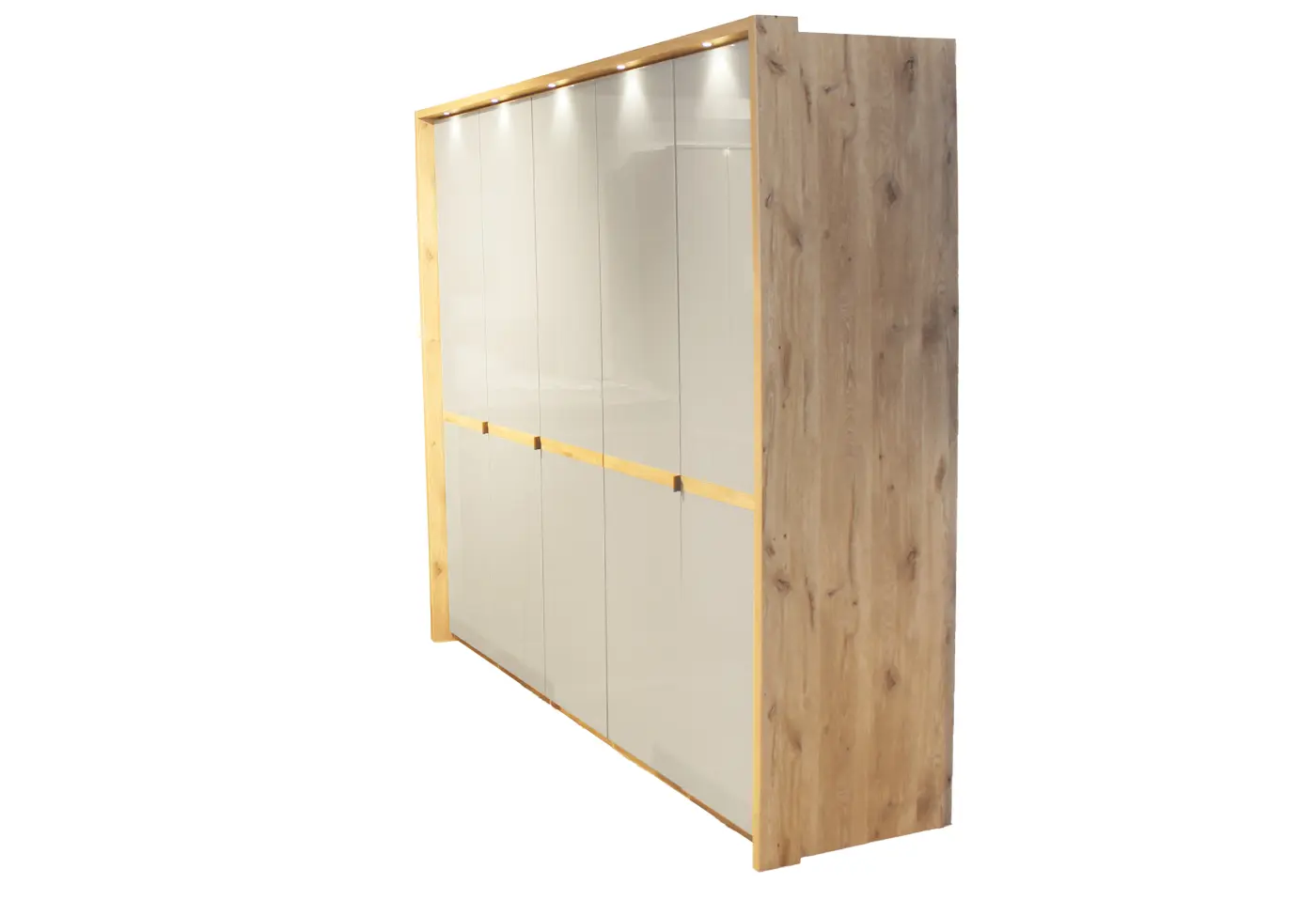 Der Drehtürenschrank Madiswil vereint moderne Eleganz mit natürlichem Charme. Die kieselgrauen Glastüren strahlen eine sanfte Ruhe aus, die perfekt mit der Nordic-Eiche-Nachbildung harmoniert und Ihrem Schlafzimmer eine stilvolle Note verleiht. Mit seinen fünf Türen bietet der Schrank großzügigen Stauraum für Kleidung und Accessoires und passt sich ideal in geräumige Schlafbereiche ein. Die dezenten Schiefergriffe unterstreichen das hochwertige Design und laden zum Berühren ein. Entdecken Sie den Madiswil exklusiv bei Delta Möel in Haag – Ihrem Partner für hochwertige Möbel, Küchen und Boutique-Artikel.