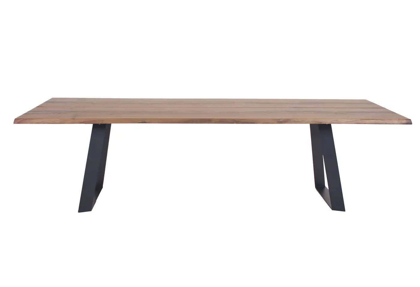 Der Esstisch 17354.8 aus rustikalem Nussbaum mit Naturöl verleiht deinem Esszimmer eine warme und natürliche Atmosphäre. Die massive Tischplatte mit versiegelten Aesten und Rissen zeigt die authentische Schönheit des Holzes, während das robuste Metallgestell in Schwarzgrau für Stabilität und modernen Kontrast sorgt. Mit einer Länge von ca. 280 cm bietet dieser Holztisch viel Platz für gesellige Stunden mit Familie und Freunden. Entdecke diesen besonderen Tisch exklusiv bei Delta Möbel in Haag – deinem Experten für Möbel, Küchen und Boutique-Artikel.In verschiedenen Variationen erhältlich.