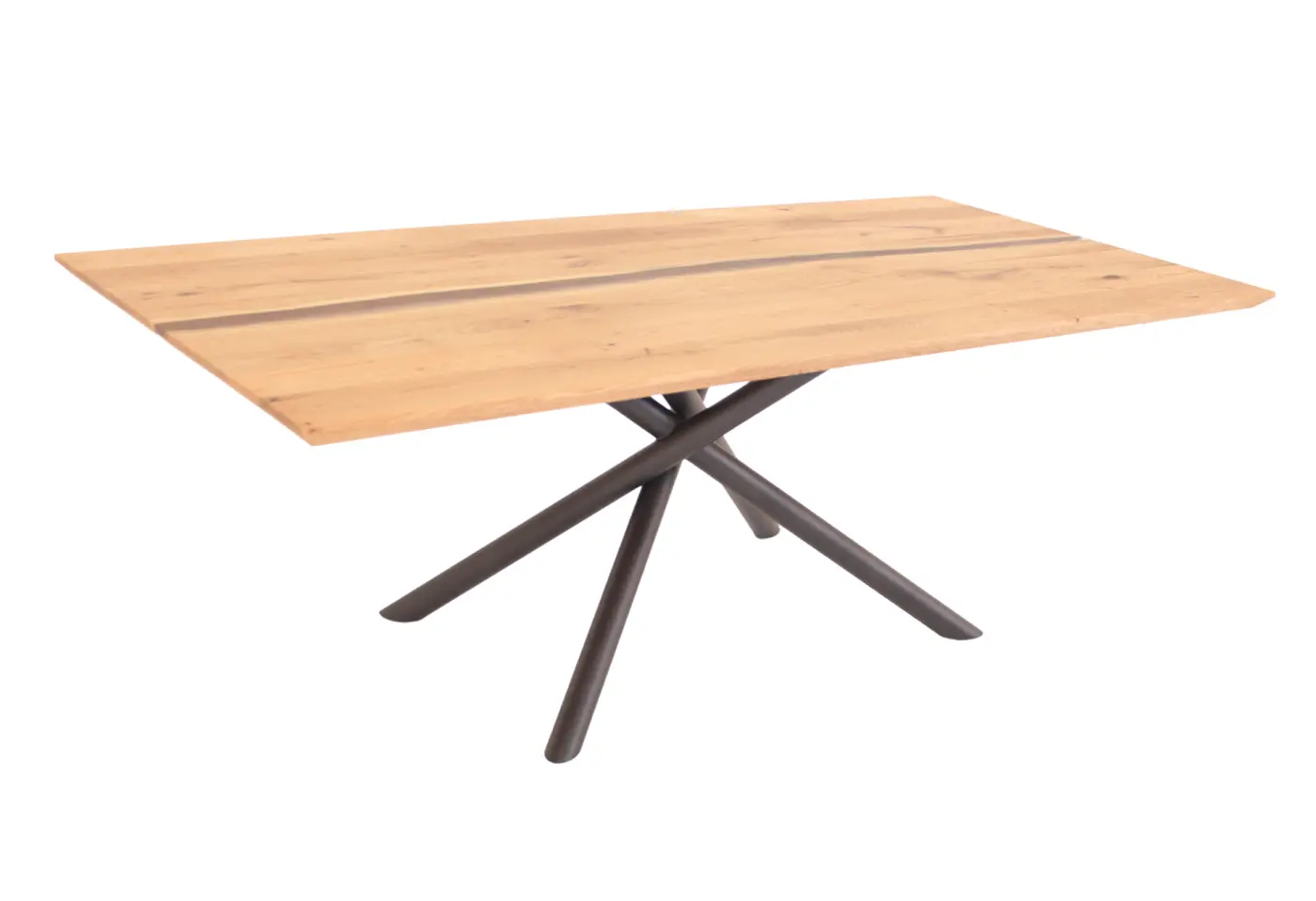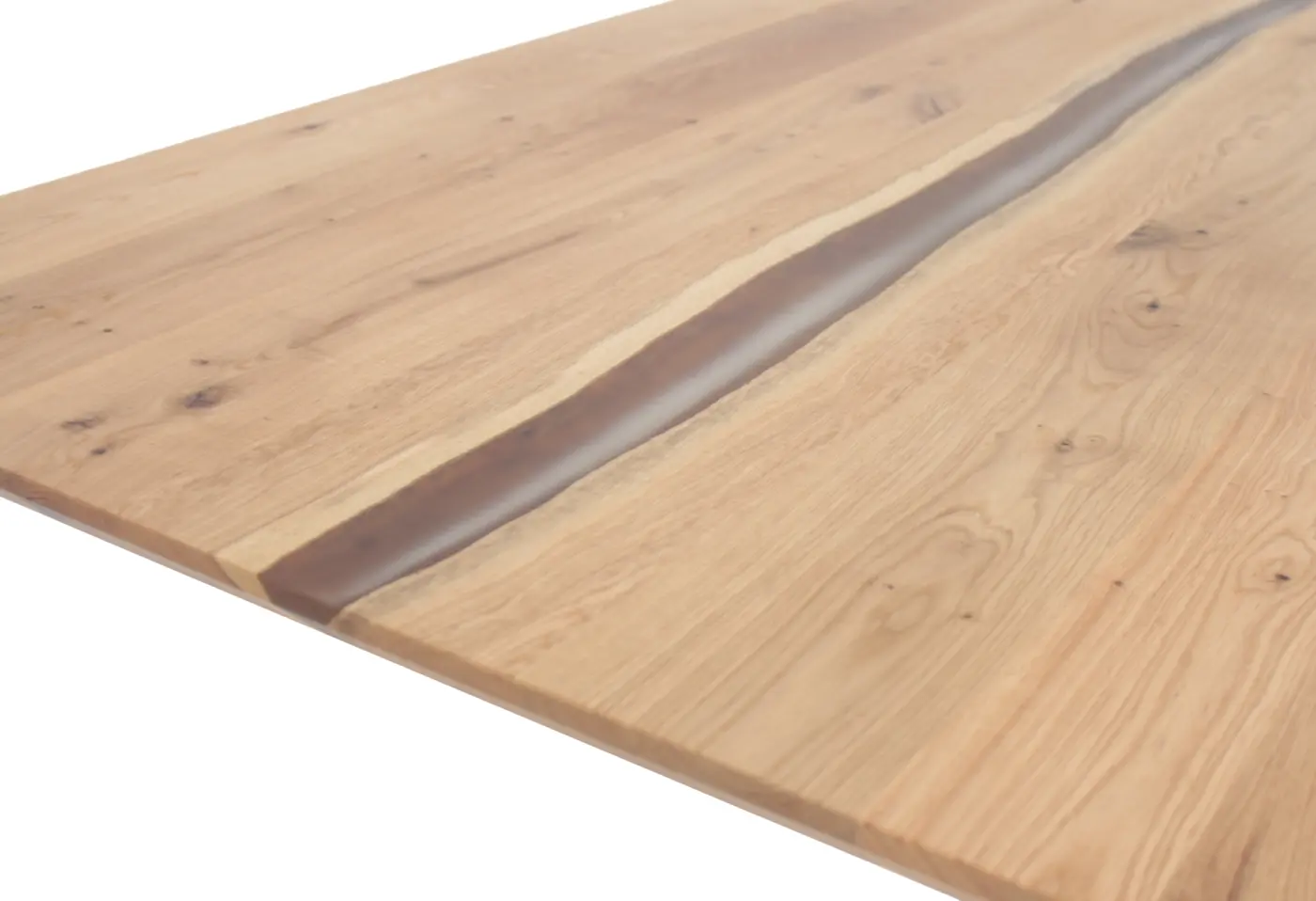 Dieser massige Esstisch aus geölter, astiger Eiche vereint urbanes Design mit einem markanten Highlight – der transparenten Epoxidharz-Mitte, die jedes Möbelstück zu einem einzigartigen Unikat macht. Die Kombination von natürlichem Holz und dem anthrazitfarbenen Metallgestell sorgt für einen modernen, stilvollen Blickfang in jedem Raum. Ob gesellige Runden oder stilvolles Dinner, dieser Tisch wird zum charismatischen Mittelpunkt Ihres Essbereichs. Entdecken Sie diesen besonderen Esstisch exklusiv bei Delta Möbel in Haag – Ihrem Experten für Möbel, Küchen und Boutique-Artikel.