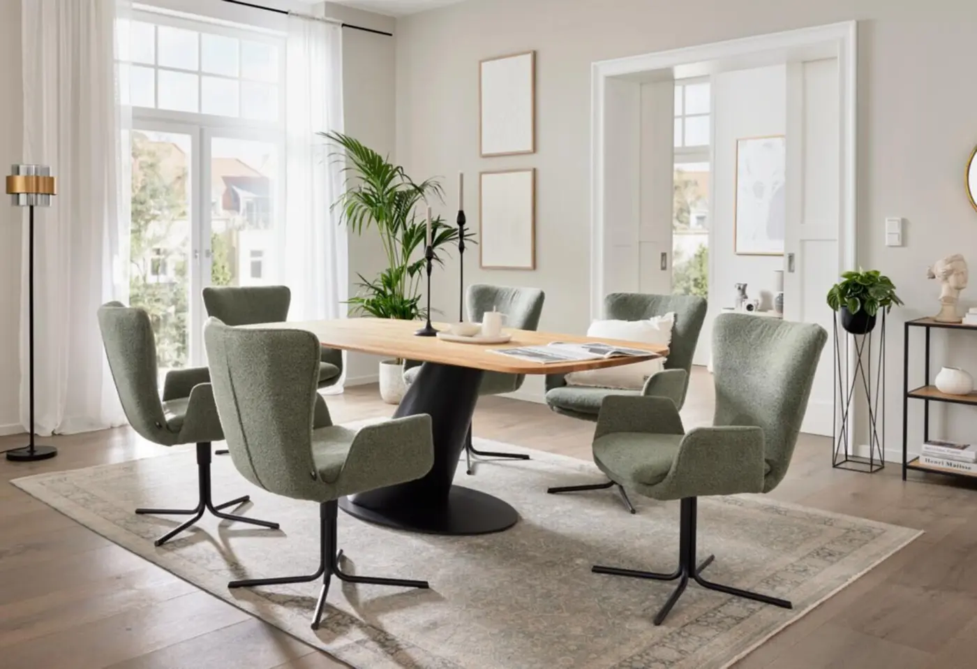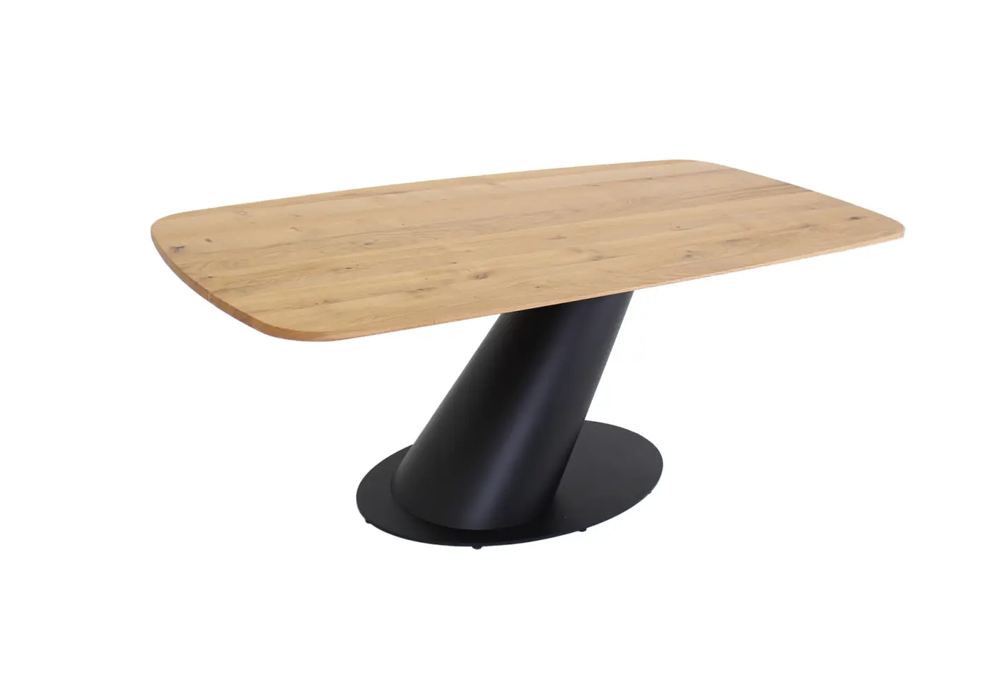 Ein echtes Design-Highlight für Ihr Esszimmer: Der Esstisch 5121 von Interliving vereint eine massiv geölte Tischplatte aus Charakter-Eiche in moderner Bootsform mit sanft gerundeten Soft-Ecken. Das asymmetrische Metallgestell mit schwarzer, ovaler Bodenplatte sorgt für einen markanten und eleganten Auftritt, der gleichzeitig zeitgemäße Leichtigkeit versprüht. Hier trifft meisterhafte Handwerkskunst auf ästhetisches Design – perfekt für stilbewusste Genießer und gesellige Momente. Erleben Sie diesen besonderen Holztisch exklusiv bei Delta Möbel in Haag, Ihrem Spezialisten für Möbel, Küchen und Boutique-Artikel.