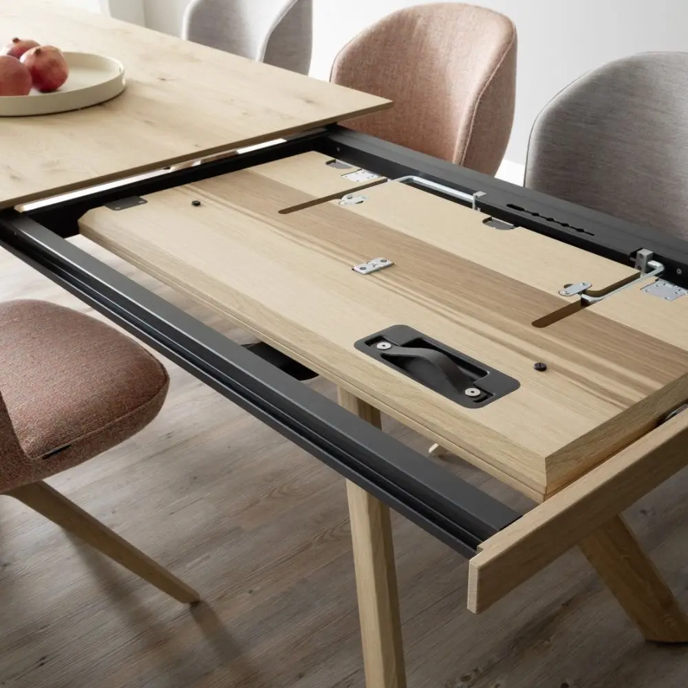 Der Esstisch Fox von Schöner Wohnen strahlt mit seiner hell geölten und gebürsteten Wildeiche natürliche Wärme und Eleganz aus. Das moderne, markante Tischgestell sorgt für ein stylisches Designhighlight in deinem Esszimmer. Mit einer Länge von ca. 190 cm und der praktischen Klappeinlage lässt sich der Tisch flexibel erweitern und bietet so perfekten Platz für gesellige Runden. Entdecke diesen besonderen Holztisch exklusiv bei Delta Möbel in Haag – deinem Spezialisten für Möbel, Küchen und Boutique-Artikel.In verschiedenen Variationen erhältlich.