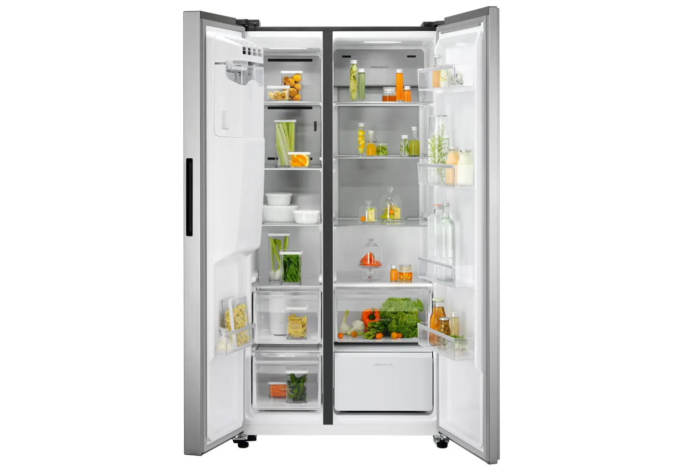 Der Electrolux Foodcenter EAL575NWCN beeindruckt mit einem grosszügigen Nutzinhalt von 572 Litern, darunter 332 Liter Kühlteil und 240 Liter Gefrierteil – ideal für grosse Küchen und Familien. Mit seinen kompakten Abmessungen von ca. 91 cm Breite, 177 cm Höhe und 73 cm Tiefe bietet er viel Stauraum bei gleichzeitig moderner, elegantem Design aus Edelstahl. Leise im Betrieb mit nur 39 dB, sorgt dieses Gerät für Frische und Ordnung in deinem Zuhause. Entdecke diesen hochwertigen Foodcenter exklusiv bei Delta Möbel in Haag – deinem Experten für Möbel, Küchen und innovative Küchengeräte. Perfekte Kombination aus Funktionalität und Stil!