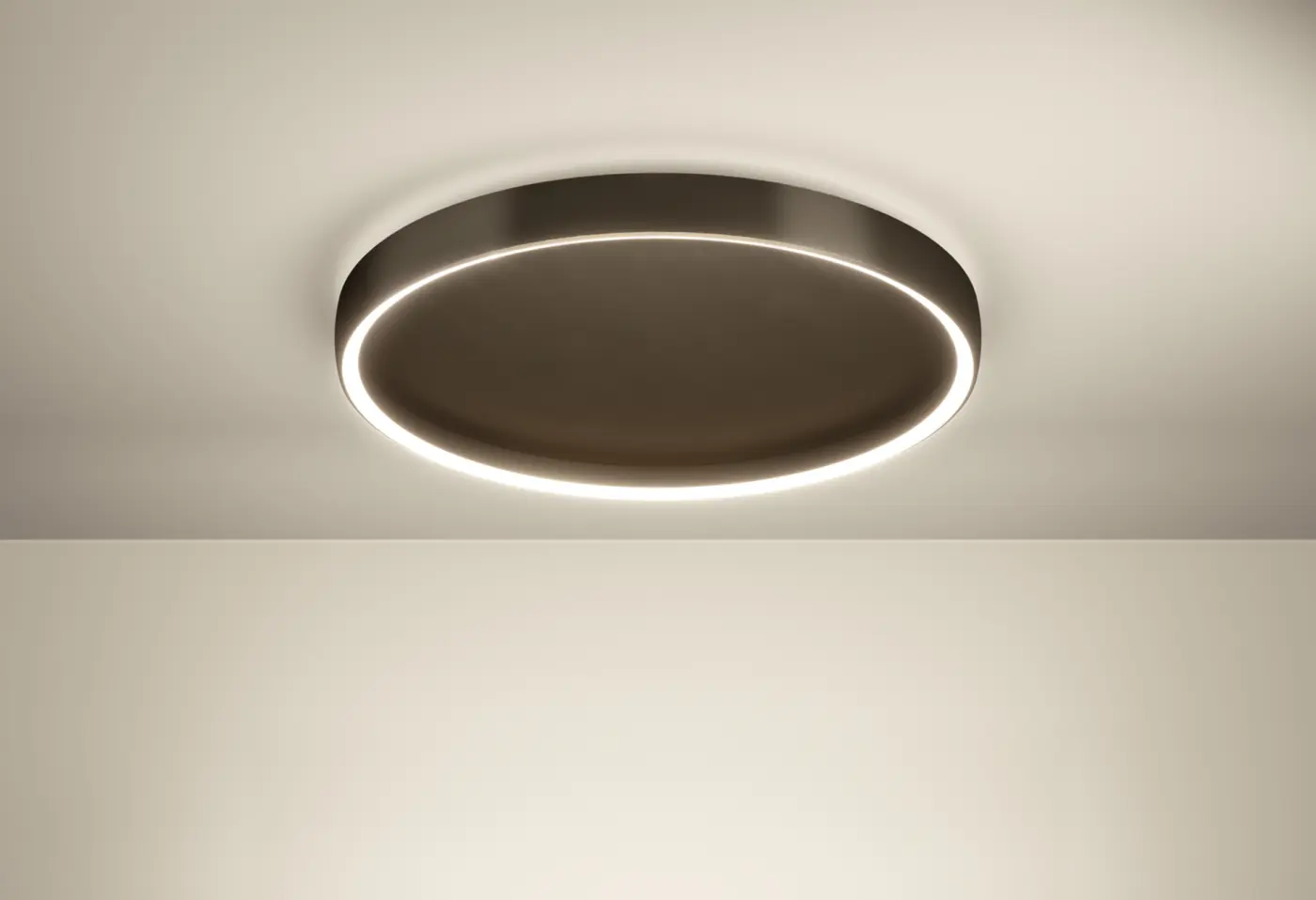 Die moderne LED-Deckenleuchte beeindruckt mit ihrem puristischen, runden Design in elegantem Schwarz-Braun und sorgt für ein helles, gleichmaessiges Licht in Ihren Wohnräumen. Mit einem Durchmesser von ca. 55 cm und einer flachen Bauhöhe von ca. 7 cm fügt sie sich dezent und stilvoll in jedes Interieur ein. Gefertigt aus Aluminium und Stahl bietet die Leuchte eine leistungsstarke LED-Beleuchtung mit 6900 Lumen, die sich bequem über Fernbedienung dimmen lässt. Entdecken Sie diese hochwertige Deckenleuchte bei Delta Möbel in Haag – Ihrem Experten für exklusive Möbel, Küchen und besondere Wohnaccessoires.