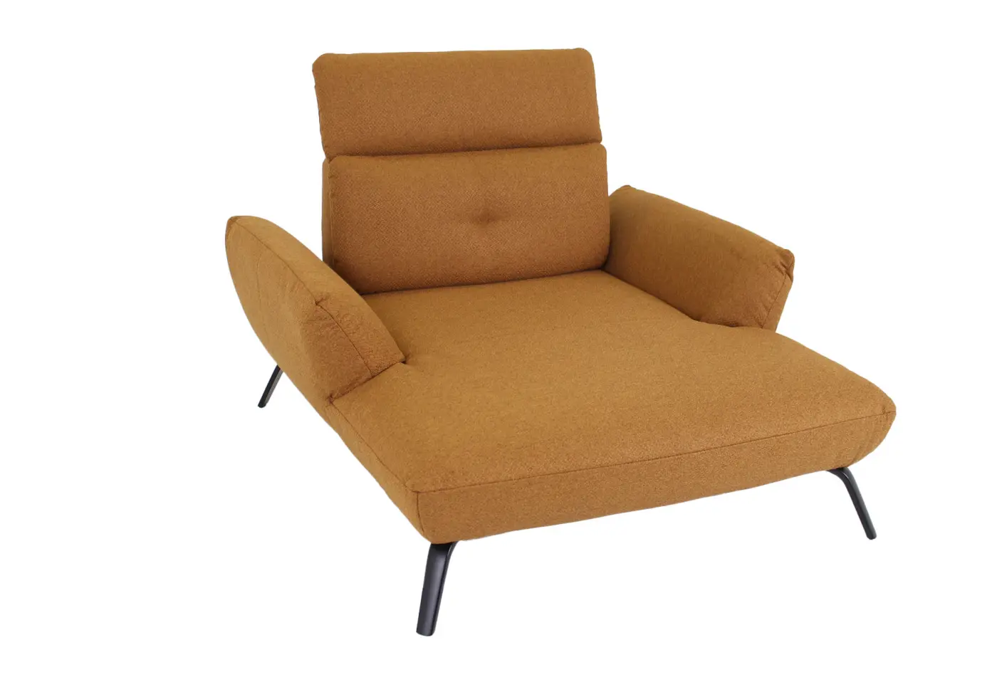 Der gemütliche Relaxsessel in warmem Portofino Mustard bringt mit seinem weichen Pur-Schaum eine wohltuende Kuschelatmosphäre in Ihr Wohnzimmer. Das matte schwarze Metallgestell verleiht dem Sessel einen modernen, klaren Look und sorgt für stabile Standfestigkeit. Besonders komfortabel machen den Sessel die manuelle Kopfteilverstellung und das passende Kissen – perfekte Begleiter für entspannte Stunden. Entdecken Sie diesen stylischen Sessel bei Delta Möbel in Haag – Ihrem Spezialisten für hochwertige Polstermöbel und wohnliches Design. Komfort und Eleganz harmonisch verbunden.