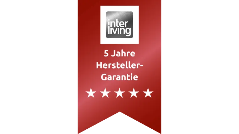 Lehnen Sie sich entspannt zurück, genießen Sie garantiert beste Materialbeschaffenheit, Funktionssicherheit sowie die Vearbeitung der Interliving Möbel. Mit den Interliving Garantie-Urkunden gewährt der Hersteller als Garantiegeber – ordnungsgemäße Nutzung und Beachtung der hierfür maßgeblichen Produkt- und Pflegeinformationen vorausgesetzt – eine 5 Jahre Hersteller-Garantie.