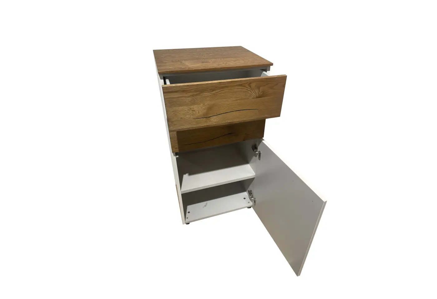 Kommode 6934.4.. Dekor weiss, Sumpfeiche massiv geölt ca. 50x100x41cm