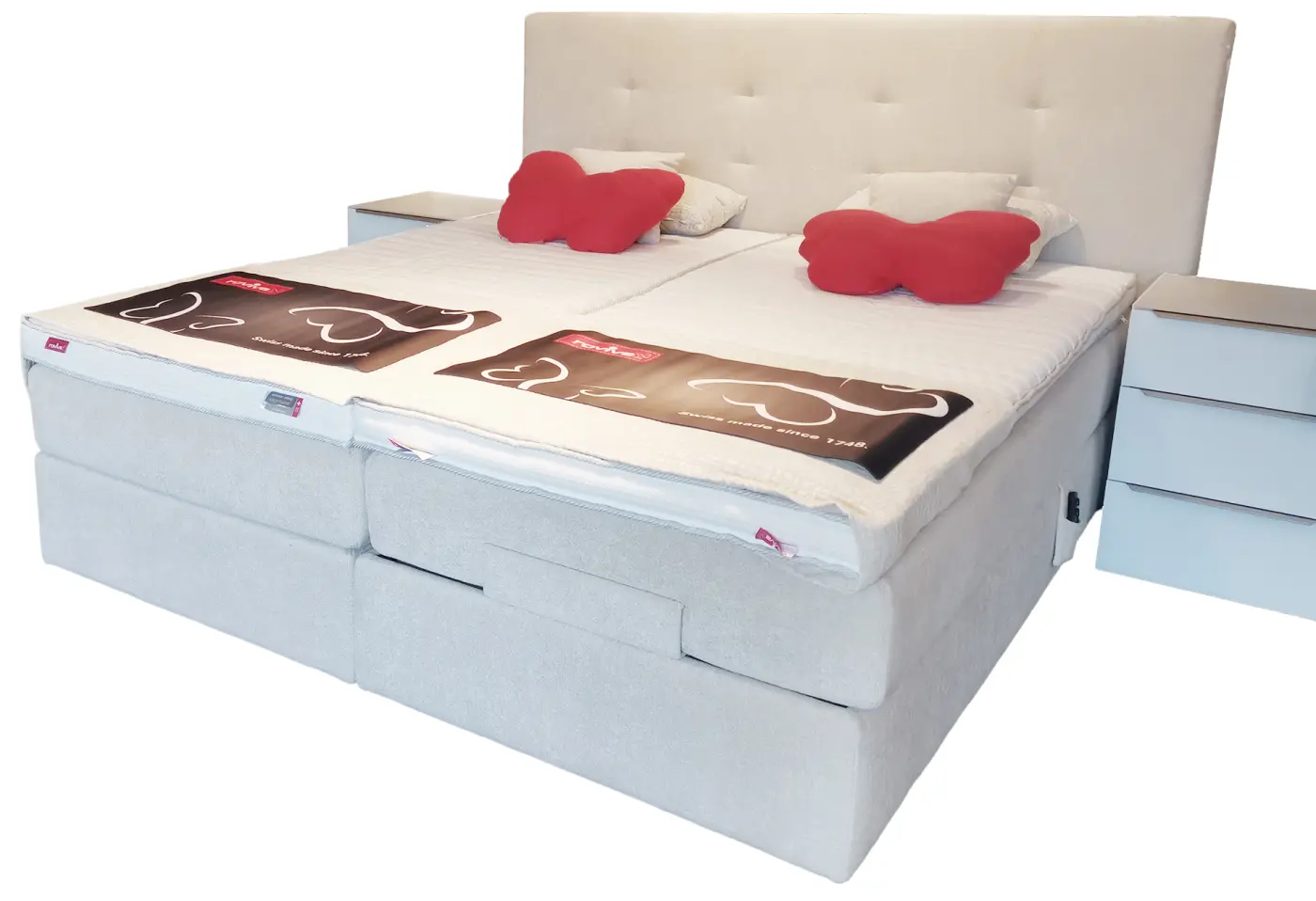 Mit einem breiten Sortiment an Matratzen – abgestimmt auf unterschiedlichste Bedürfnisse – finden Sie bei uns das Schlafsystem, das wirklich zu Ihrem Körper passt. Ergänzen lässt sich Ihr Bett durch individuell anpassbare Lattenroste, Motorrahmen, Systemrahmen oder verstellbare Rollroste – für noch mehr Komfort. Für Ihr ganz persönliches Schlafklima bieten wir eine grosse Auswahl an Kissen: vom klassischen Wohlfühlkissen über ergonomische Nackenkissen und Gel-Schaumkissen bis hin zum atmungsaktiven Latexkissen. Dazu passende Duvets für jede Jahreszeit – vom leichten Sommerduvet bis zur kuscheligen Daunendecke. Ergänzt wird unser Sortiment durch Topper, Matratzenauflagen sowie stilvolle Bettwäsche in vielen Materialien und Farben.