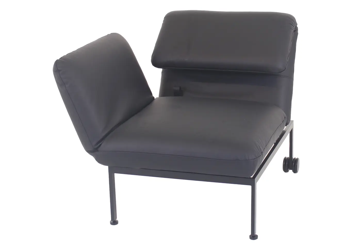 Die moderne Relaxliege besticht durch ihren eleganten Bezug aus Leder Unit 5423 in edlem Schwarz und bietet höchsten Komfort für entspannte Stunden. Das pulverbeschichtete Metalluntergestell mit höhenverstellbaren Füssen vorn sorgt für Stabilität, während die praktischen Alu-Rollen hinten Bewegungsfreiheit ermöglichen. Mit einem integrierten Drehmechanismus auf der linken Seite lässt sich die Liege flexibel ausrichten – perfekt für gemütliche Momente im Wohnzimmer. Entdecken Sie diese hochwertige Relaxliege bei Delta Möbel in Haag – Ihrem Experten für exklusive Polstermöbel und stilvolles Wohnen. Komfort und Funktionalität in zeitlosem Design vereint.