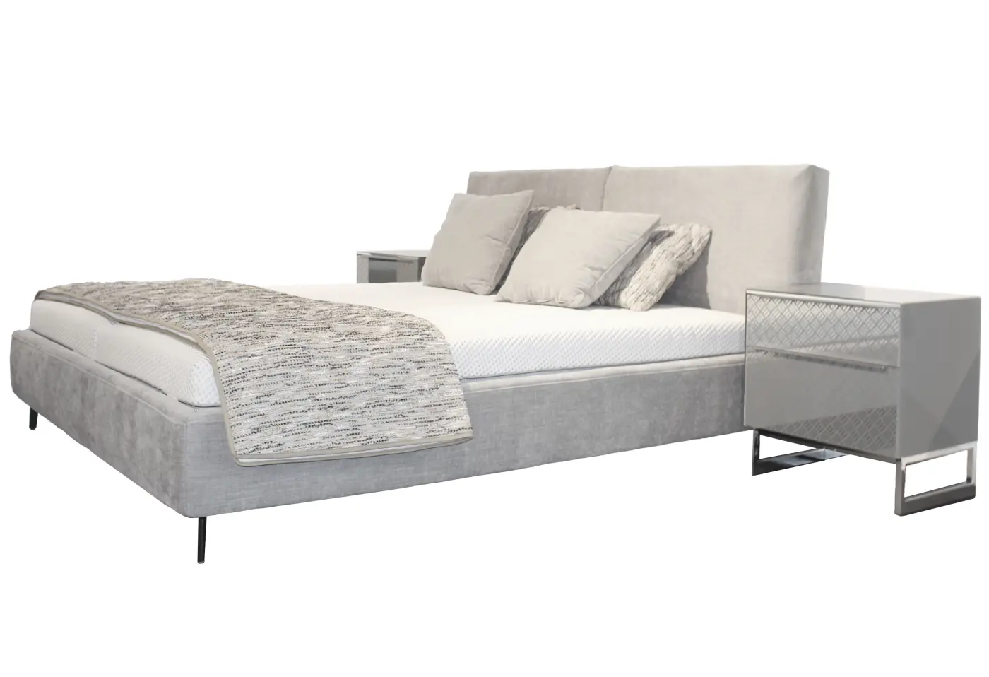 Das Polsterbett 1416 von Interliving in elegantem Silver-Ton verwandelt dein Schlafzimmer in eine ruhige Wohlfühloase. Der weiche Stoffbezug und die filigranen schwarzen Metallfüsse verleihen dem Bett eine zeitlose Leichtigkeit, während die komfortable Liegefläche von rund 180x200 cm erholsame Nächte verspricht. Die integrierte Matratze und der passende Lattenrost – je nach Härtegrad – runden die durchdachte Polstergarnitur perfekt ab. Entdecke das Bett 1416 exklusiv bei Delta Möbel in Haag, deinem Experten für stilvolle Möbel und individuelle Wohnträume. Genieße erholsamen Schlaf und modernes Design in einem.