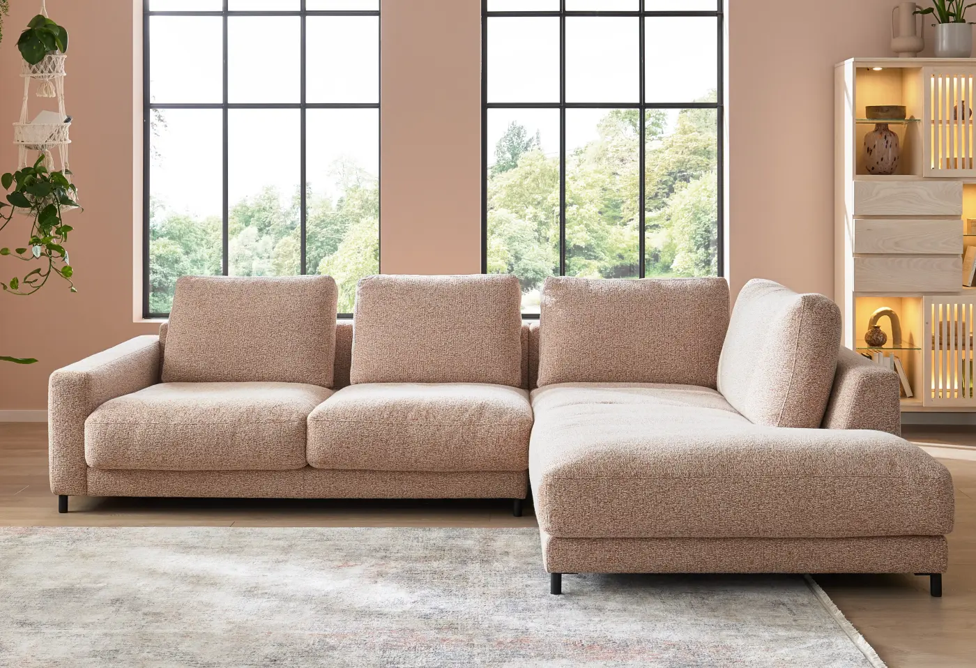 Die Polstergarnitur Roomio No. 4104 begeistert mit ihrem warmen Rusty Melange Stoff und dem soften Sitzkomfort, der entspanntes Verweilen auf großzügigen ca. 279x154 cm verspricht. Die elegante Eckkombination mit 3-Sitzer und Longchair lädt zum Relaxen ein und wird von filigranen, matt schwarzen Metallfüssen perfekt in Szene gesetzt. Setzen Sie stilvolle Akzente in Ihrem Wohnzimmer bei Delta Möbel in Haag.