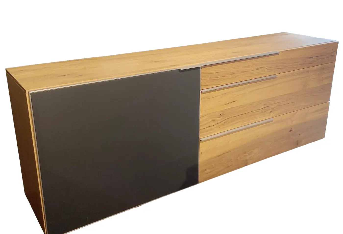 Sideboard V-Alpin von Voglauer Korpus / Schiebetür: Eiche Altholz / Colorglas "anthrazit" ca. 224x82x52cm