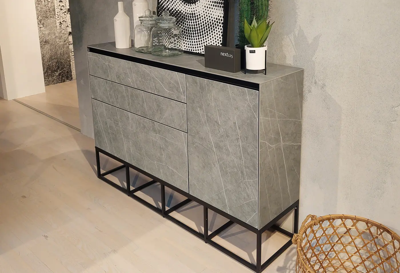 Sideboard 12118.. Ceramic Marmor grigio NB, Onyxschwarz ca. 152x102,5x37cm