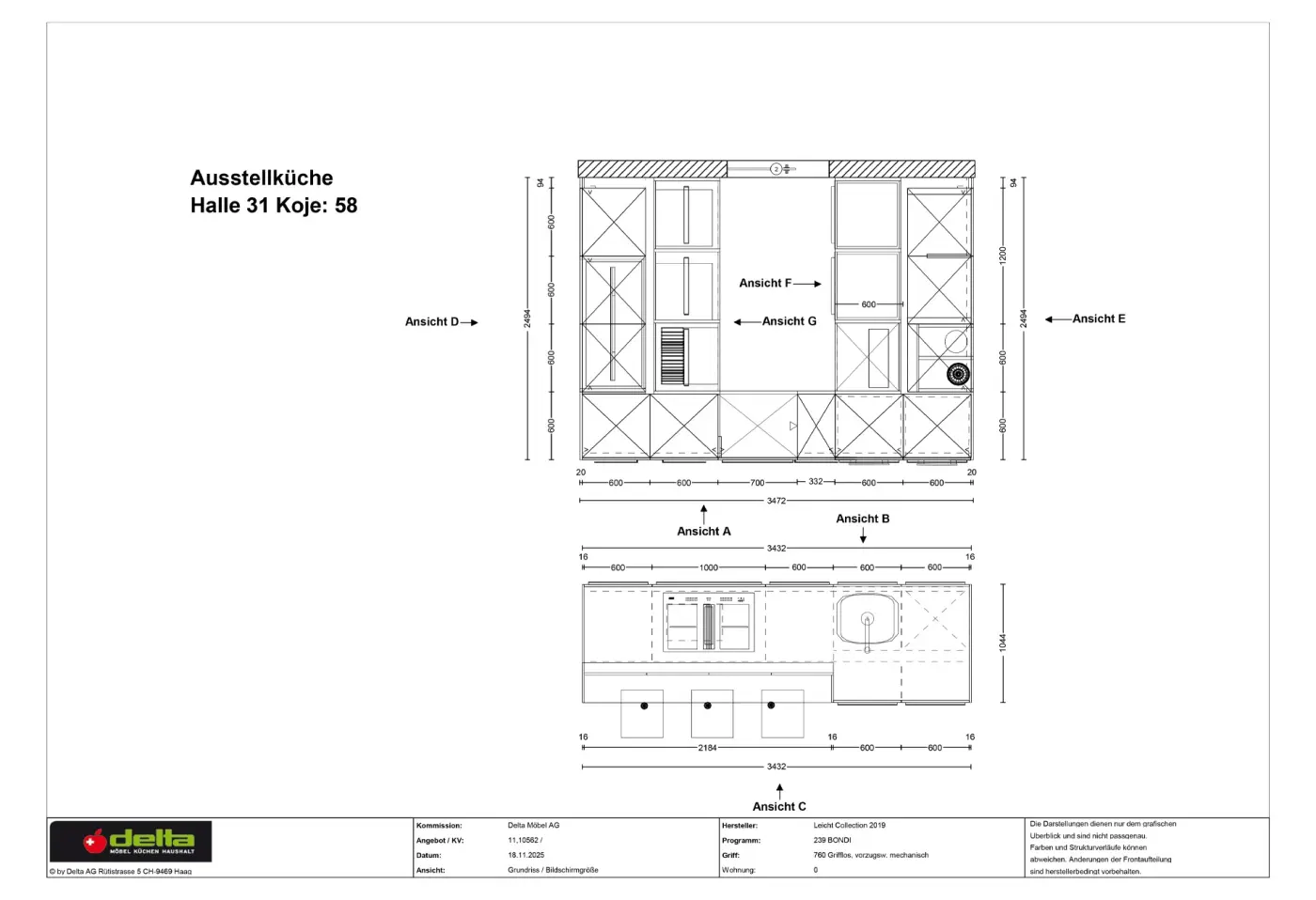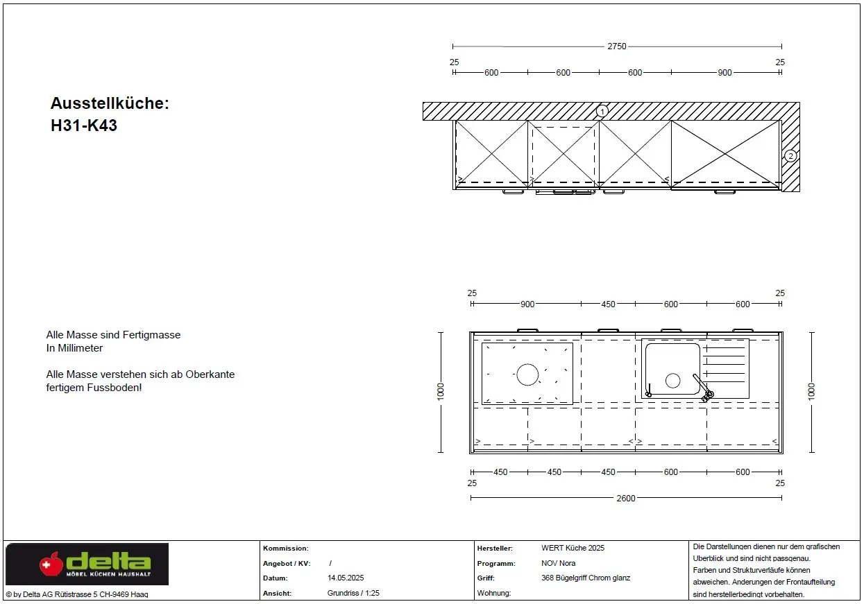 Wirtschaftsraum Variante 1 K095 Muschelweis, Bügelgriff 547 Edelstahlfarben