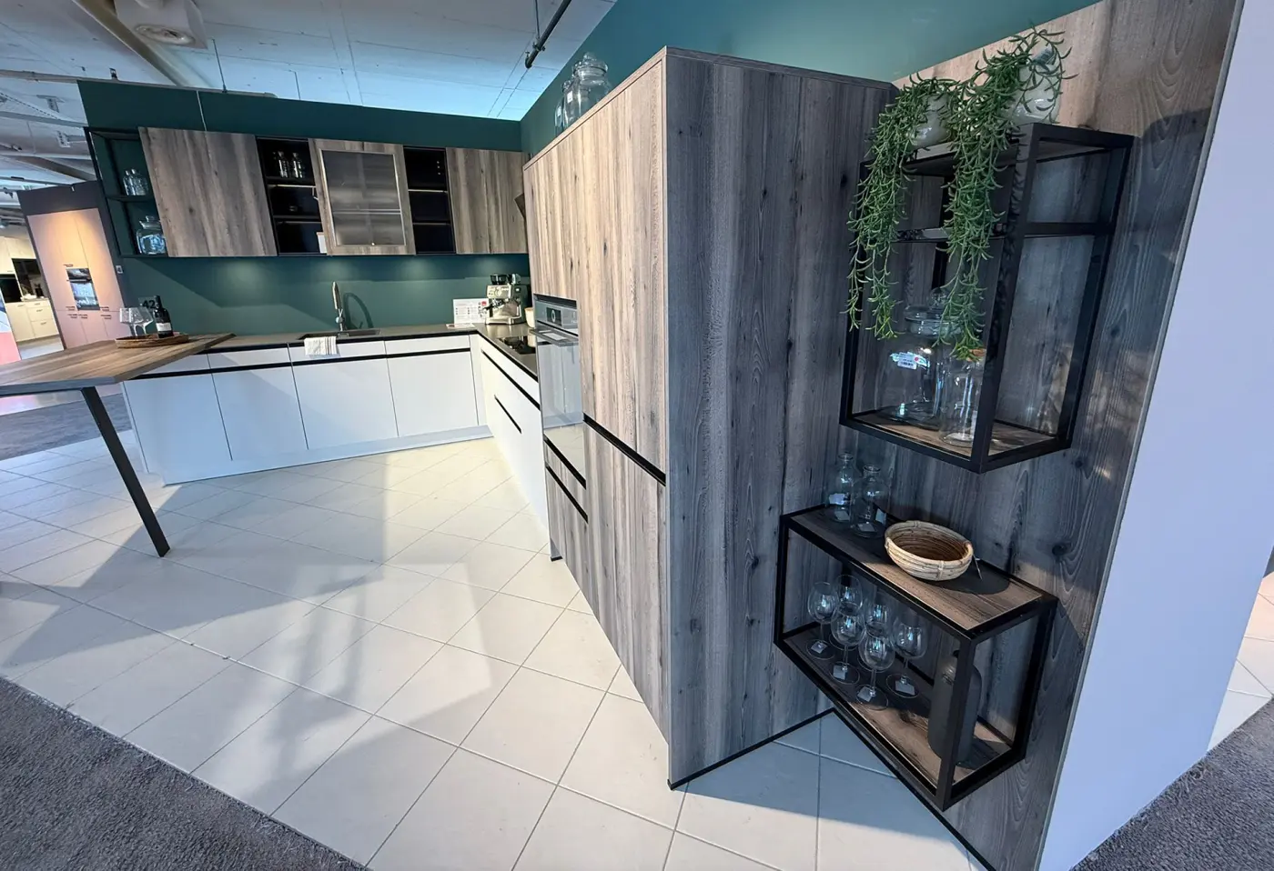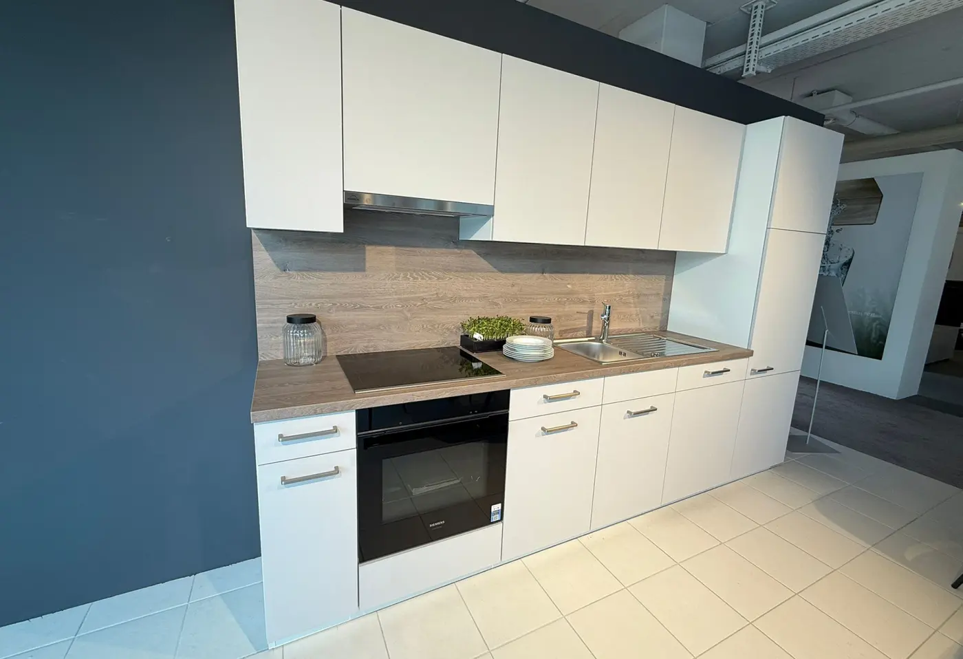 Einbauküche 23432..Seidengrau, Eiche Bergamo Nachbildung