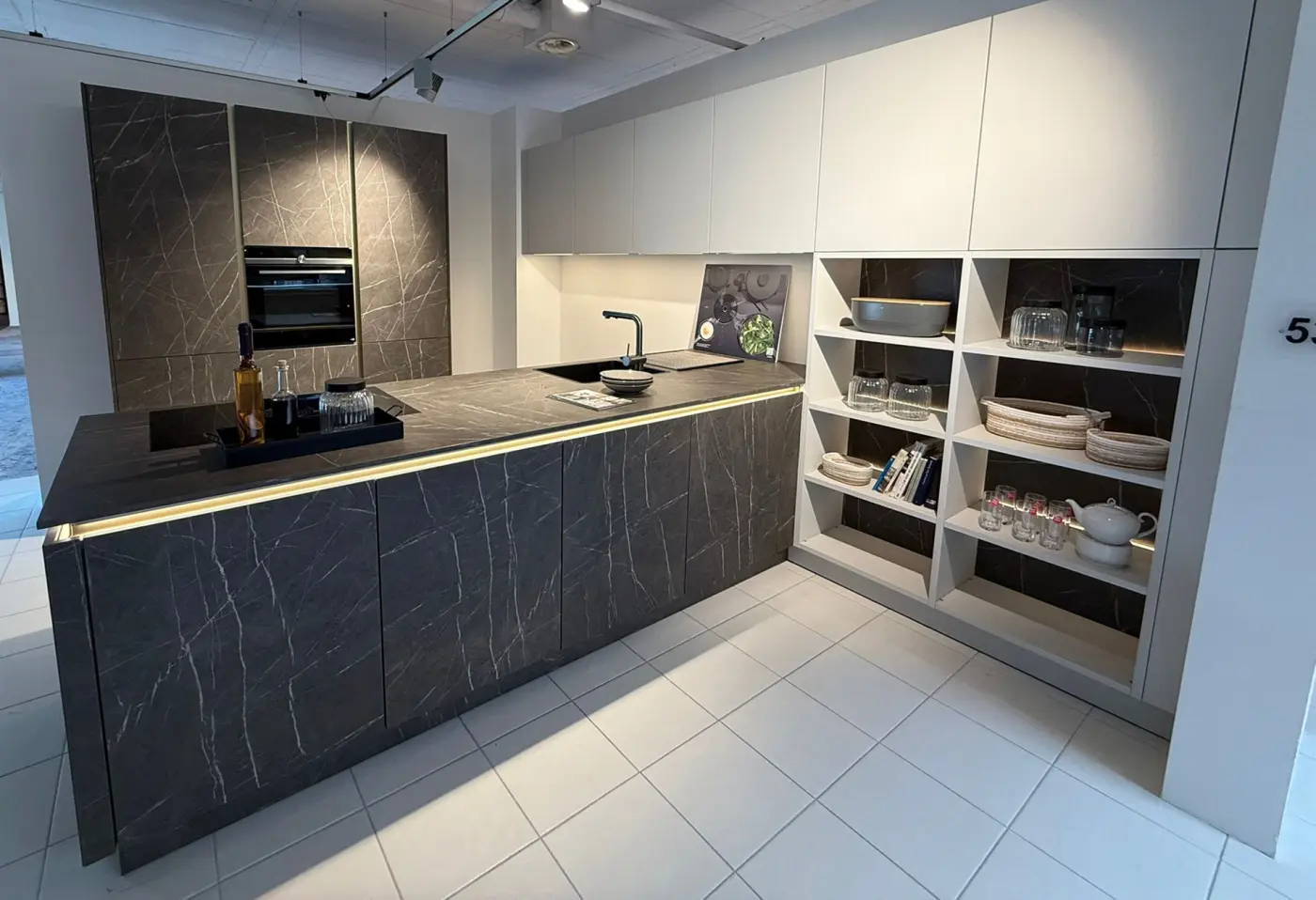 Einbauküche 19430.. Lavaschwarz, Kristallgrau, Marmor Scuro Nb.