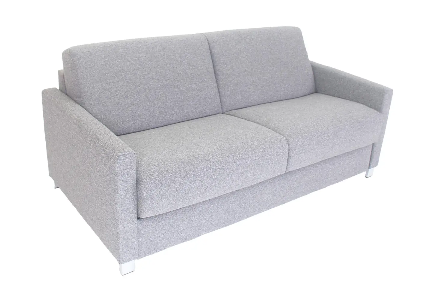 Das elegante Schlafsofa in dezentem Grau verwandelt dein Wohnzimmer im Handumdrehen in eine gemütliche Schlafoase. Die komfortable Sensoformmatratze und das stabile Lattenrost sorgen für erholsamen Schlaf, während das chromfarbene Fussgestell dem Sofa eine moderne Note verleiht. Ob als stilvoller 2-Sitzer tagsueber oder als praktisches Gästebett nachts – dieses Sofa bietet Komfort und Flexibilität zugleich. Entdecke dieses hochwertige Schlafsofa exklusiv bei Delta Möbel in Haag, deinem Spezialisten für Möbel, Küchen und exklusive Wohnlösungen.