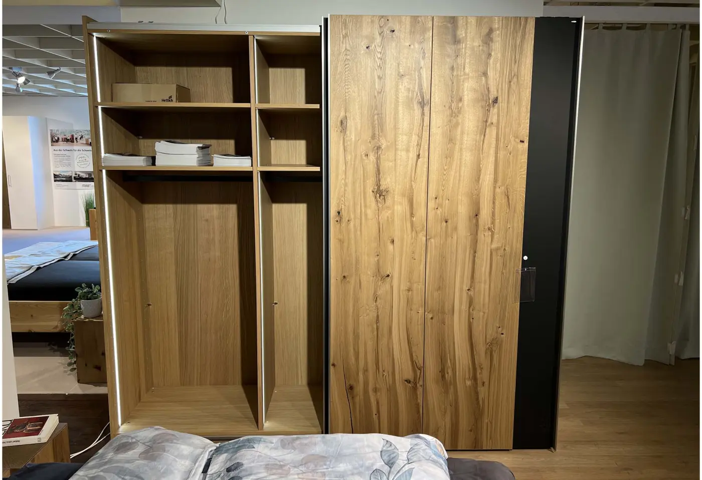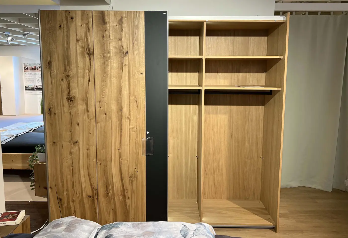 Der Schrank V-Alpin sleeping von Voglauer vereint natürliche EA Eiche Altholz mit edlem anthrazitfarbenem Glas zu einem zeitlos eleganten Highlight in Ihrem Schlafzimmer. Seine großzügigen Maße und die Schwebetüren bieten viel Platz, um Ihre Kleidung stilvoll und übersichtlich zu verstauen. Die warmen Holztöne bringen eine gemütliche Atmosphäre ins Zuhause, während die Glasfronten für moderne Akzente sorgen. Mit optionaler Innenbeleuchtung lässt sich der Schrank perfekt ins Licht setzen – exklusiv bei Delta Möbel in Haag, Ihrem Spezialisten für hochwertige Möbel und Wohnlösungen.