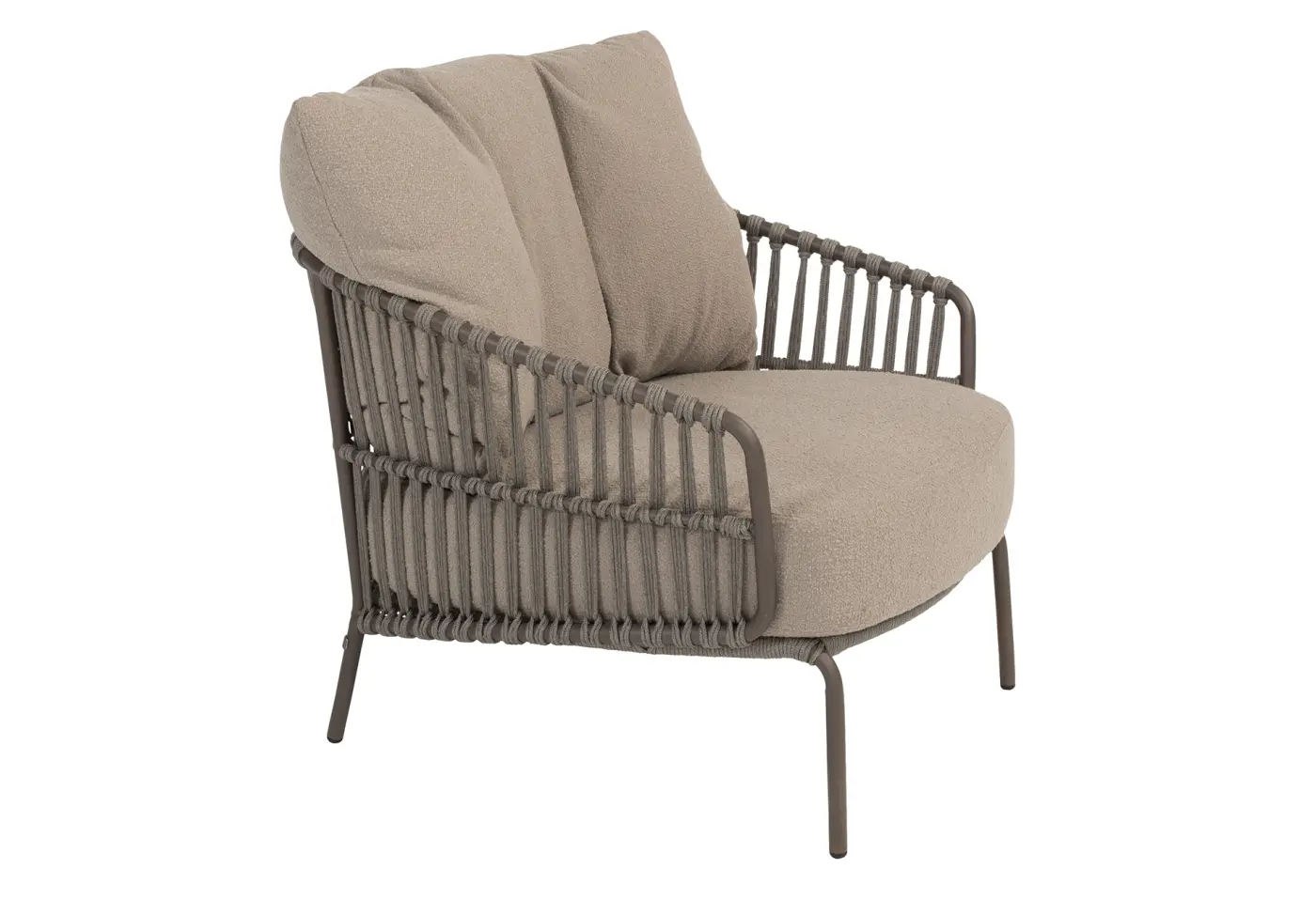 Der elegante Lounge-Sessel 23169.1 besticht durch sein wetterfestes Geflecht aus hochwertiger Rope-Schnur aus 100% Polypropylen in dezentem Taupe. Das beschichtete Edelstahlgestell in Terre sorgt für stabile und langlebige Qualität, während die weiche Sitzfläche mit angenehmer Sitzhöhe zum entspannten Verweilen einlädt. Ideal, um deinen Garten oder die Terrasse stilvoll und komfortabel zu gestalten. Entdecken Sie diese modernen Sessel bei Delta Möbel, Ihrem Experten für exklusive Gartenmöbel und Wohnaccessoires.