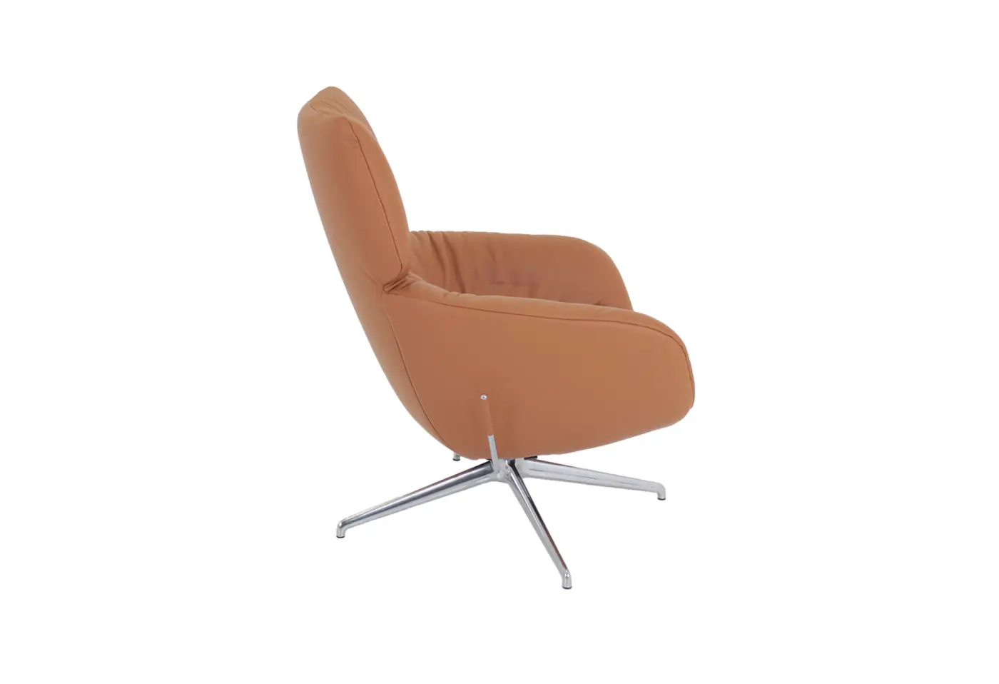 Der Sessel Lodey Ceras Brandy von Leolux vereint zeitlosen Komfort mit modernem Design. Der luxuriöse Bezug in warmem Ceras Brandy und die polierte Aluminiumbasis verleihen dem Sessel eine edle Note. Mit einer Sitzhöhe von ca. 45 cm und einer Tiefe von ca. 84 cm lädt er zum behaglichen Verweilen ein, während die clevere Ergonomie Rücken und Nacken ideal unterstützt. Perfekt für entspannte Stunden zuhause. In Delta Möbel in Haag.