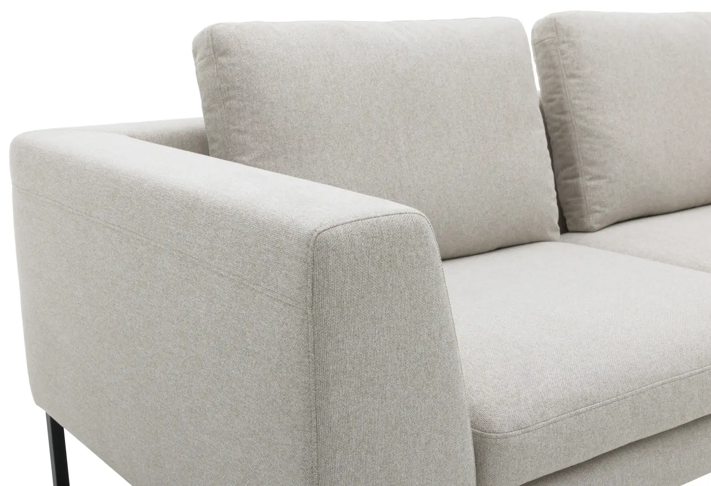 Die Polstergarnitur Roomio No. 4101 begeistert mit ihrem klaren Design und dem hochwertigen Stoffbezug Simply Clean in warmem Sandton. Der komfortable 2,5-Sitzer bietet mit seiner Soft-Polsterung und den mattschwarzen Metallkufen eine perfekte Kombination aus Stil und Bequemlichkeit. Ob für gesellige Stunden oder entspannte Momente – dieses elegante Sofa passt sich wohnlich und modern jedem Raum an. Erhältlich bei Delta Möbel in Haag.