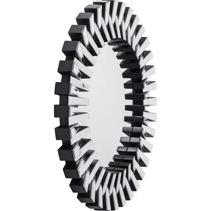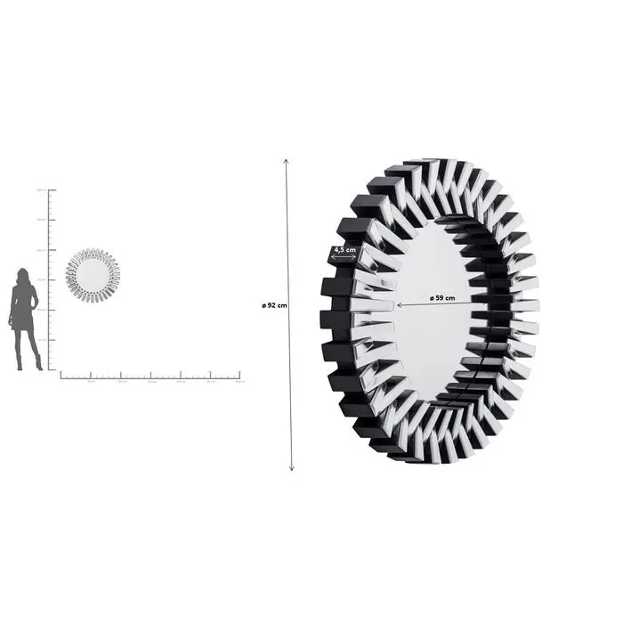 Dieser beeindruckende, grosse runde Wandsiegel besticht durch seinen außergewöhnlichen Rahmen, der aus zahlreichen verspiegelten Elementen besteht und ihm eine faszinierende Tiefe und Struktur verleiht. Mit einem Durchmesser von ca. 92 cm ist er ein echter Eyecatcher an jeder Wand und setzt stilvolle Akzente, besonders in modernen Interieurs in Schwarz-Weiss oder klaren Farbkombinationen. Die schlanke Bauweise mit ca. 5 cm Tiefe sorgt für eine elegante Präsenz ohne aufzutragen. Entdecke diesen außergewöhnlichen Spiegel bei Delta Möbel in Haag, deinem Experten für Design und Wohnaccessoires mit Stil.