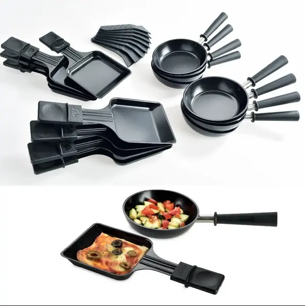 Racletteofen, Wende-Grillplatte, 4 antihaftbeschichtete Pfännchen, 4 Kunststoff-Raclettespachteln, Parkdeck für Pfännche